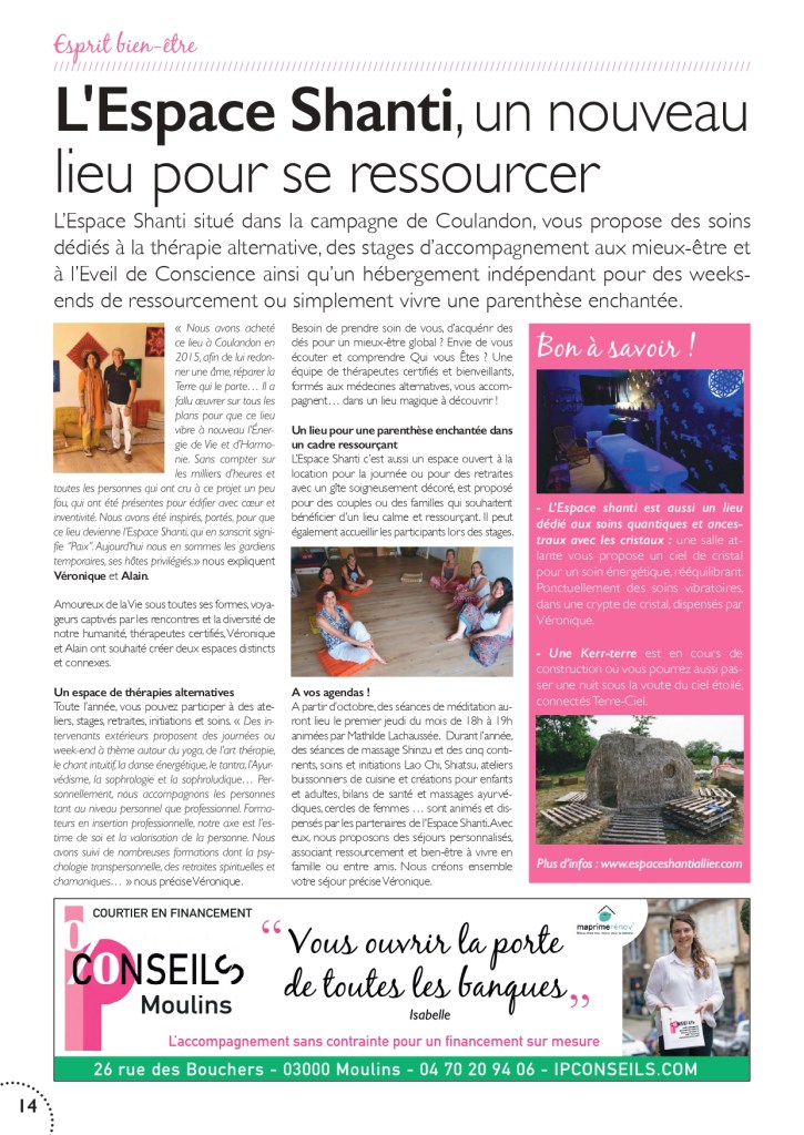 Nomade dans l’âme, je propose des séances, stages et formations dans différentes régions. Installée en Allier depuis le printemps 2024, je serai heureuse de vous rencontrer à l’espace Shanti.